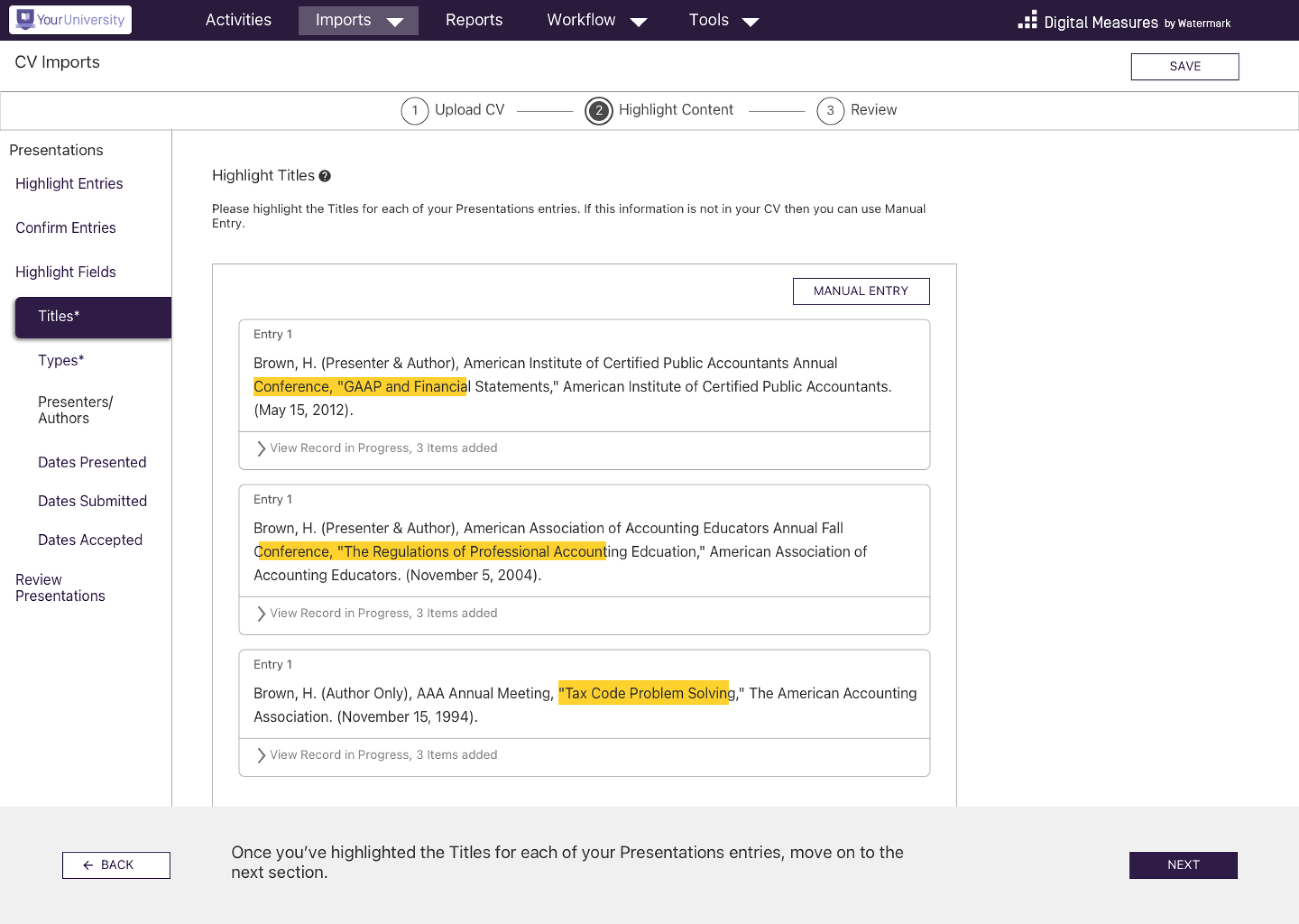The process of getting data into Digital Measures was tedious and time consuming, so much so that many users simply refused to do it. This meant that quite a few clients were spending quite a lot of money on a product that simply wasn’t doing its job. Needless to say, that’s hardly a sustainable situation and Watermark was very eager to find a solution, ideally one that felt modern and intuitive.